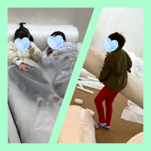 ベッドを作ったり、1万個に1つの💛のプチプチを見つけたり、、、