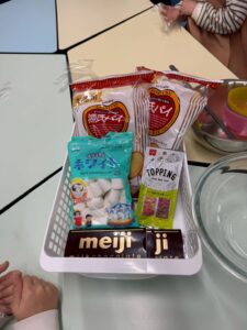 マシュマロをちぎったりカラーシュガーをかけたりして