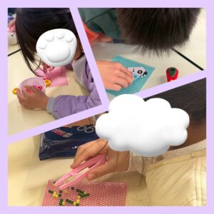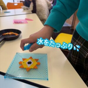 【工作】アクアビーズ💧 ブログ 2026.04.10 こんにちは!わんぱくクラブ3です🐾 3月26日(木)、工作イベントで 💧アクアビーズ💧 をしました(^▽^)/ 専用のトレイに並べて、霧吹きで水をかければ くっついて固まる不思議なビーズです🎵 早速やってみよう! 画像を見て忠実に再現する子、頭の中に浮かんだものを思うままに作る子がいました😊 並べ終えたら水をかけて乾かして完成です✨ お家に飾ったり、キーホルダーにしたりしてね😽